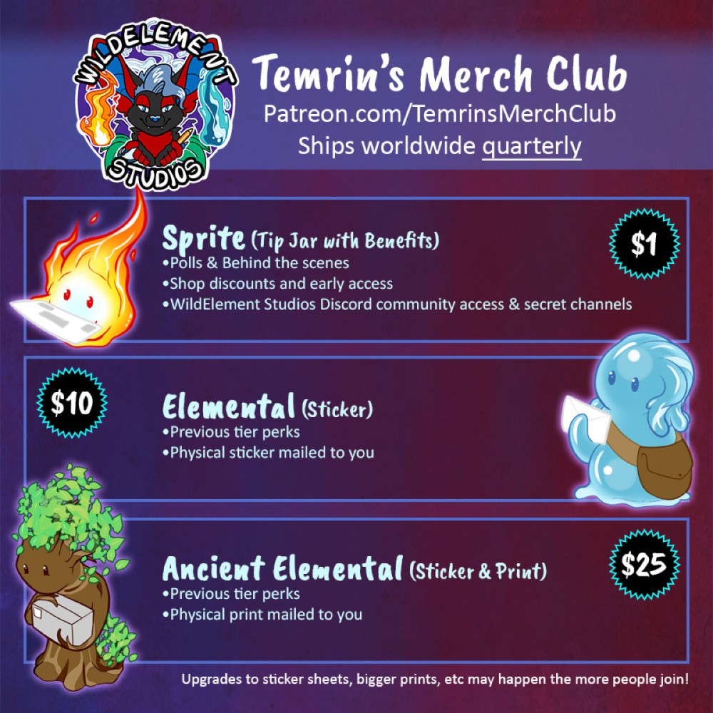 After a hiatus, I'm happy to announce that I have re-launched my merch club onto it's own patreon page! Patrons will get shop discounts, input and votes in polls, discord access, merch and charged only 4 times a year, not monthly.